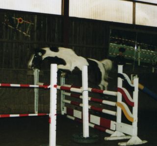 Die Überbauung ist nur noch minimal, die Vorderbeine sind also doch noch ein wenig länger geworden. Meine "Serina" (nach einer tapferen Kriegerin aus einem Science-Fiction-Roman) ist im Umgang das (kinder-)liebste Tier, das man sich vorstellen kann. Sie geht brav (wenn auch manchmal gelangweilt) ihre Dressur-Lektionen, aber Springen ist ihr Lebensinhalt. Wer hätte gedacht, dass sie mit diesen doch kurzen Beinchen (sie hat jetzt einen Stockmaß von 1,55 cm) jede Kurve und jeden Oxer mit gespitzten Ohren und Feuer in den Augen nimmt.