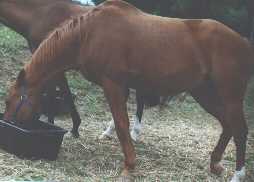| Abzeichen: | Hinten links weisse Fessel, Mondsichel auf der Stirn | | Besonderheiten: | Hannoveranerbrand linke Hinterhand Narbe hinten links vom Sprunggelenk abwaerts, das Pferd ist leicht daempfig, dem Pferd wurde die gesamte Maehne und die Haelfte des Schweifes abgeschnitten |  |
