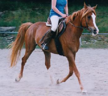 | Farbe: | Fuchs mit hellem Behang und einem 10cm grossen weissen Fleck auf der linken Bauchseite |