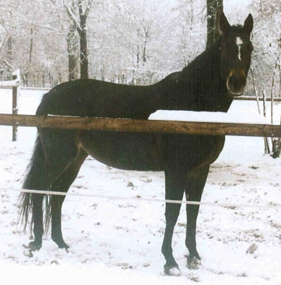 unregelmäßige schmale Blesse, Stern, Schnippe, hinten links Fessel weiß