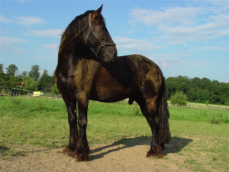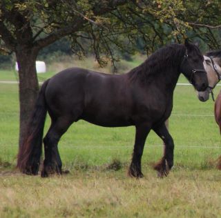 Friese im alten Typ (kräfig gebaut, gut trainiert, starker Behang, üppiger Schweif, halblange Mähne),